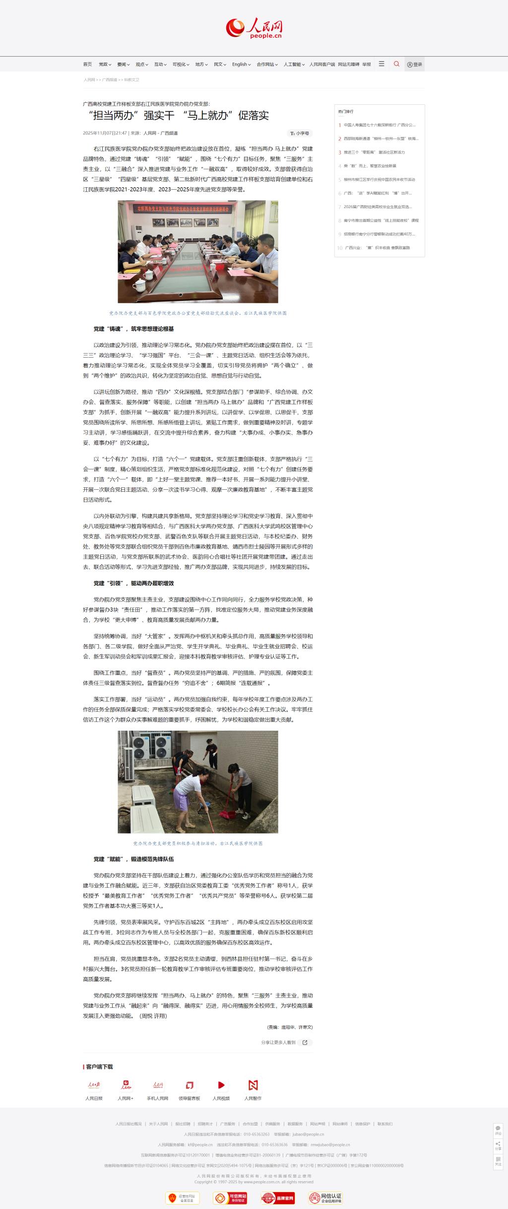 【媒体看右医】人民网:广西高校党建工作样板支部beat365英国官方网站党办院办党支部: “担当两办”强实干 “马上就办”促落实