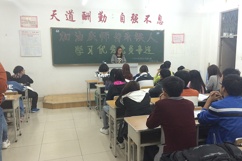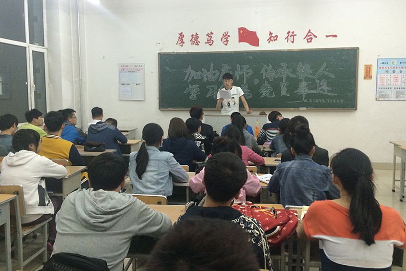 为传承优秀铁人精神,传递庆师正能量,提高新一代入党积极分子素质,加强党的思想理论建设和党员队伍建设,开云kaiyun官方网站学生党支部于5月4日晚18:00在主楼231开展了“加油庆师,传承铁人,学习党员优秀事迹”班会活动。本次会议由2014级各班班长组织,团支书主持,全体同学参加。