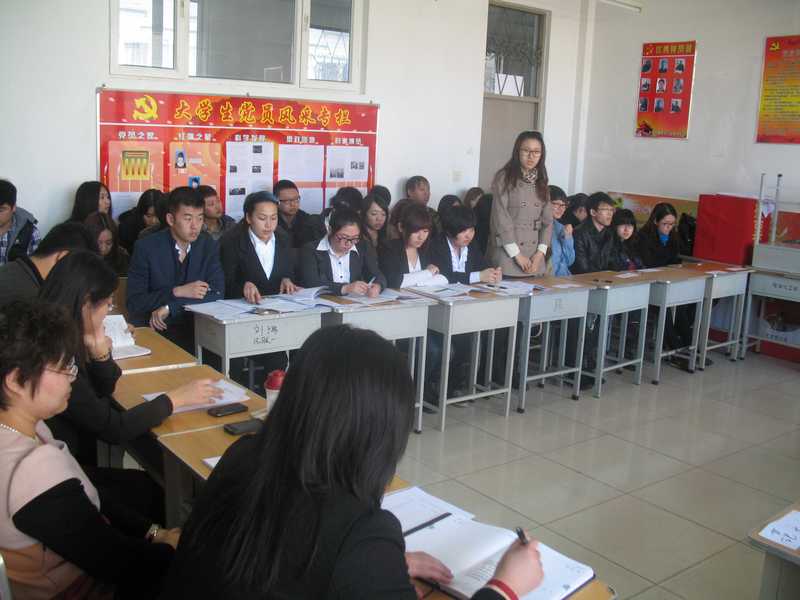 会上物理学专业5位预发展对象王佳、祝男、栾静、房雪薇、王誉羚,电子信息工程专业4位预发展对象、范天文、赵望、管学银、徐文涛,自动化专业4位预发展对象、赵鑫阳、王鑫、胡志鹏 、王庆慧分别宣读《入党志愿书》;入党培养人分别介绍发展对象培养情况和意见。支部委员张宏伟老师代表支委会向支部大会汇报13名同志的培养考察综合审查报告。有表决权的党员采取无记名投票的方式对13名预发展对象进行了表决,表决一致通过。邓雨巍书记宣读支部大会决议,同意13名同志发展为预备党员。最后,13名同志发表了自己入党感想,对讨论中提出的有关问题表明态度。