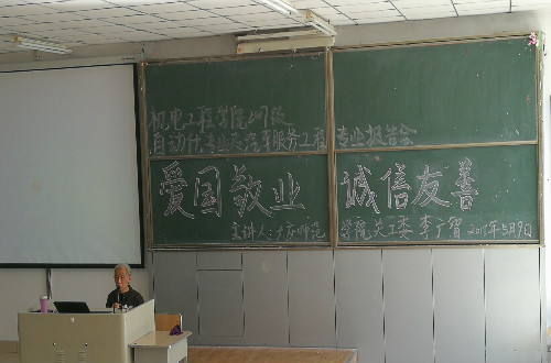 爱国敬业诚信友善是我们当代大学生为人处事的基本准则。开云kaiyun官方网站于2018年5月9日13:30在主楼2-1举办“爱国敬业,诚信友善”教育会议,会议由kaiyun官方网站入口关工委李广智老师主讲,17级全体学生参加。