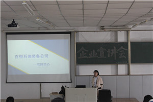 为引导同学们了解用人单位所需人才类型,强化提升学生面试能力。开云kaiyun官方网站于3月21日13:30分,在主楼2-1教室组织举行学生就业招聘会宣讲。由百恒石油责任有限公司的代表杨建国和杜慧敏为开云kaiyun官方网站的同学进行宣讲。