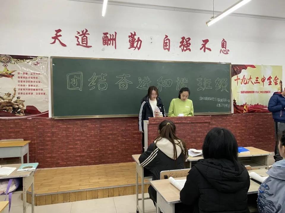 我党早期工人运动领导人之一的邓中夏先生有云:五人团结一只虎,十人团结一条龙,百人团结像泰山。正如邓先生所言,五人为虎,十人化龙,百人成山,其所拥的力量都离不开集体的团结。纵观古今,一展宏图的无不是与他人精诚团结,和谐奋进之人。因此,一个国家,民族只有团结奋进方能立足于世界,才能谋求进步蓬勃发展。带着这样的思想,学生们进行了激情饱满的演讲,进行了扣人心弦的歌曲表演以及有关团结奋进的游戏等。通过本次班会,学生们对团结奋进一词有了更深一层的了解与研究,我们青年学生的目标不仅是通过努力学习科学文化知识为祖国的建设添砖加瓦,而且还是凭借自己的能力团结集体,使我们的集体在发展中焕发光彩。