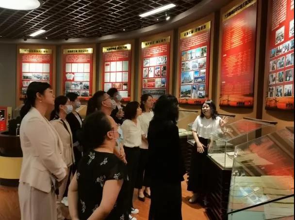 首先讲解员张文彬老师讲解了大庆精神文献研究中心的发展历程,然后带领参观人员进行历史文物展览模块的讲解。
