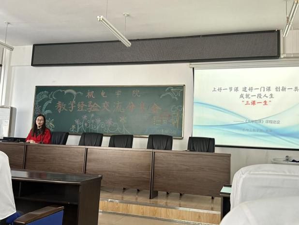 两位优秀教师的交流分享,充分展示了优秀的教学经验和教育的情怀。通过本次教学经验交流分享活动,机电学院的全体教师提升了课程教学技能的认知水平,深入思考了如何提升个人教学能力,如何以高质量课堂教学为基础,进行课程建设、教学改革探索和教师教学竞赛准备。本次活动激发了教师深耕教学的动力,今后,机电学院教师不断提高自身教书育人的本领,真正做到“多思善学、教学相长”,在自身快速成长的前提下,更好地为学生能力培养贡献力量。