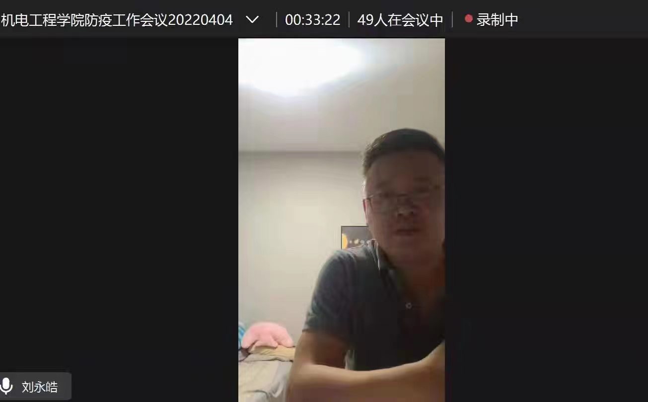 2022年4月4日晚19:00,开云kaiyun官方网站召开疫情防控工作会议,落实学校要求和部署,强调纪律要求。学院全体教师通过钉钉参会。