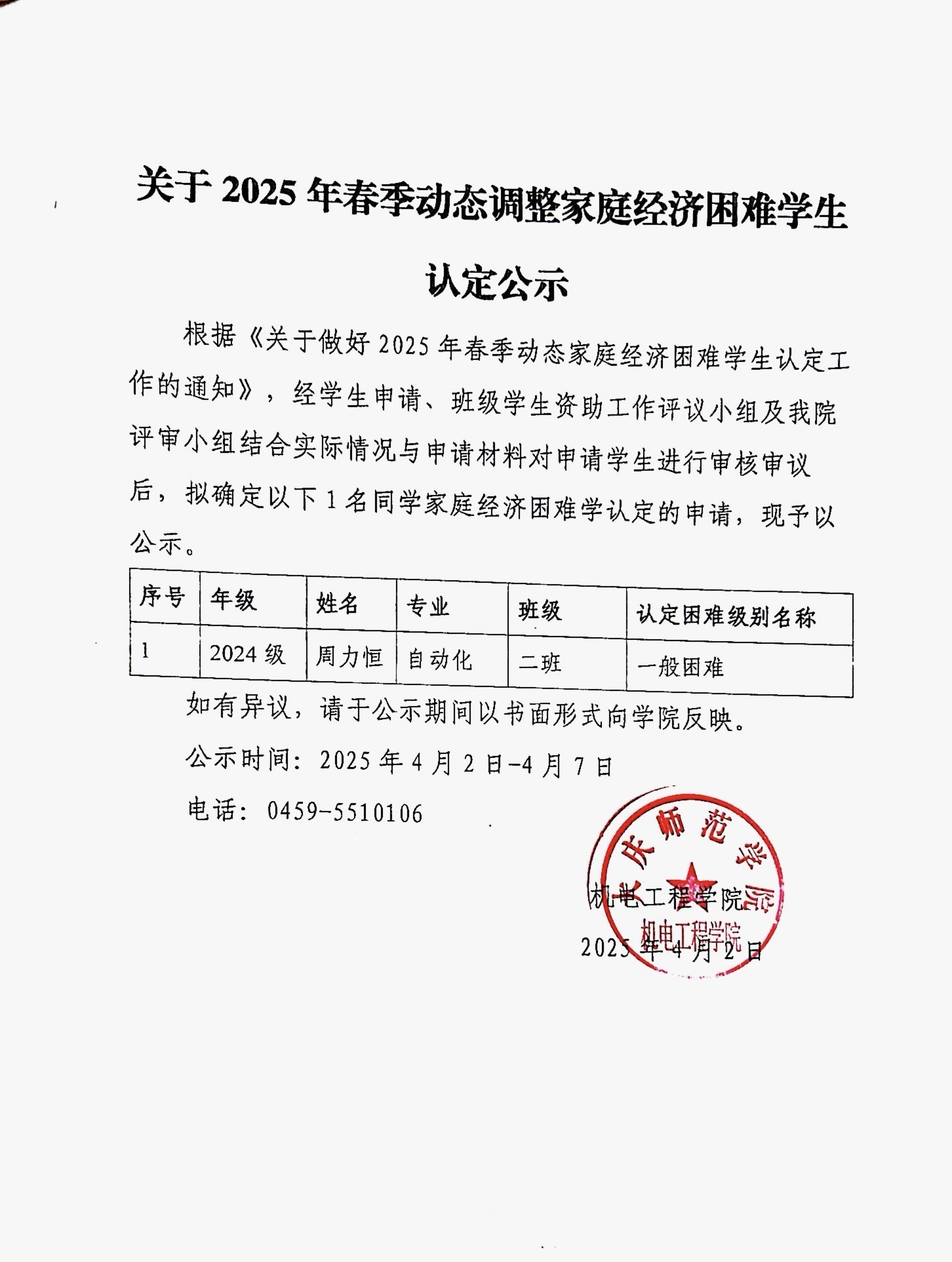开云kaiyun官方网站2024-2025春季学期动态调整家庭经济困难学生认定公示