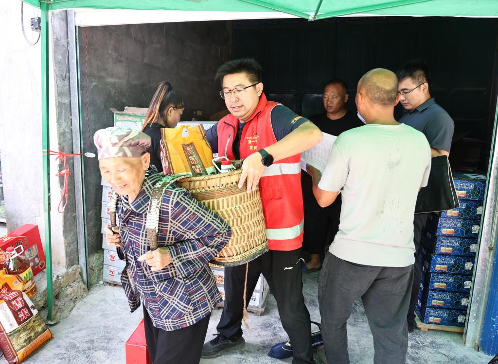 驻村第一书记为帮扶户搬运慰问品。