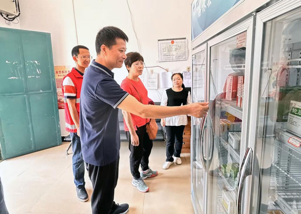 党委副书记赵丽娟在帮扶村卫生室查看药品情况。