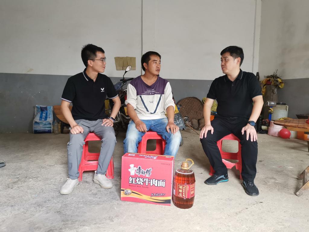 邓砚书记深入走访慰问帮扶户,给帮扶户送上食用油和大米等慰问品。
