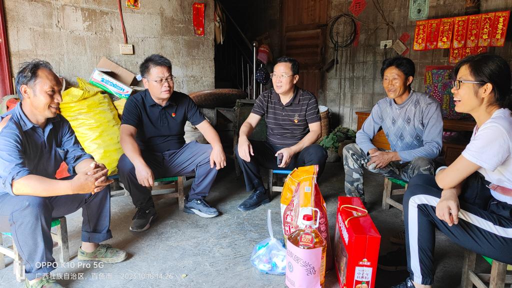 10月18日,学校党委书记邓砚,党委副书记赵丽娟,党委常委、副校长周艳娥,党委常委、副校长黄龙坚,党委常委、纪委书记冼季夏,党委常委、副校长谭盛葵,党委常委、副校长王俊利等领导分别深入西林县定点帮扶5个村,以走访、座谈交流等形式,开展“巩固脱贫攻坚成果 扎实推进乡村振兴”“六个一”帮扶活动。学校第一至第八组、第十组帮扶干部,驻村第一书记及工作队员参加活动。