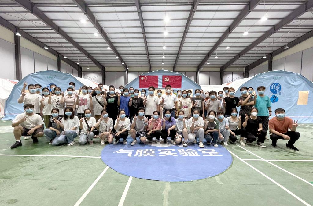 凌佳佳同学参加气膜实验室工作。