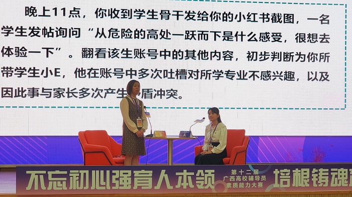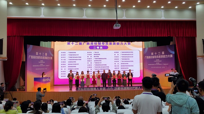 10月25—27日,由广西壮族自治区教育厅主办,教育部高校思想政治工作队伍培训研修中心(广西师范大学)承办的第十二届广西高校辅导员素质能力大赛在广西桂林圆满落幕。beat365医学检验学院党委副书记何彦妮老师代表学校参赛,经过激烈角逐,何彦妮老师荣获本次大赛二等奖,实现了beat365在该赛事成绩的新突破。