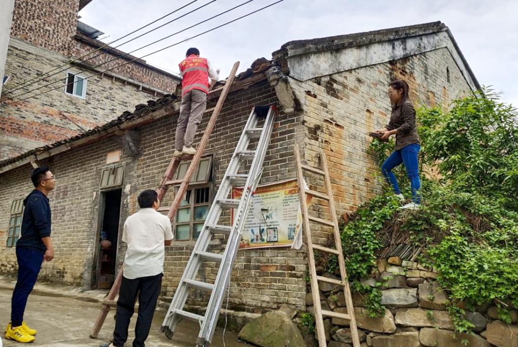 王荣贵组织村两委、驻村工作队帮助群众修缮房屋。