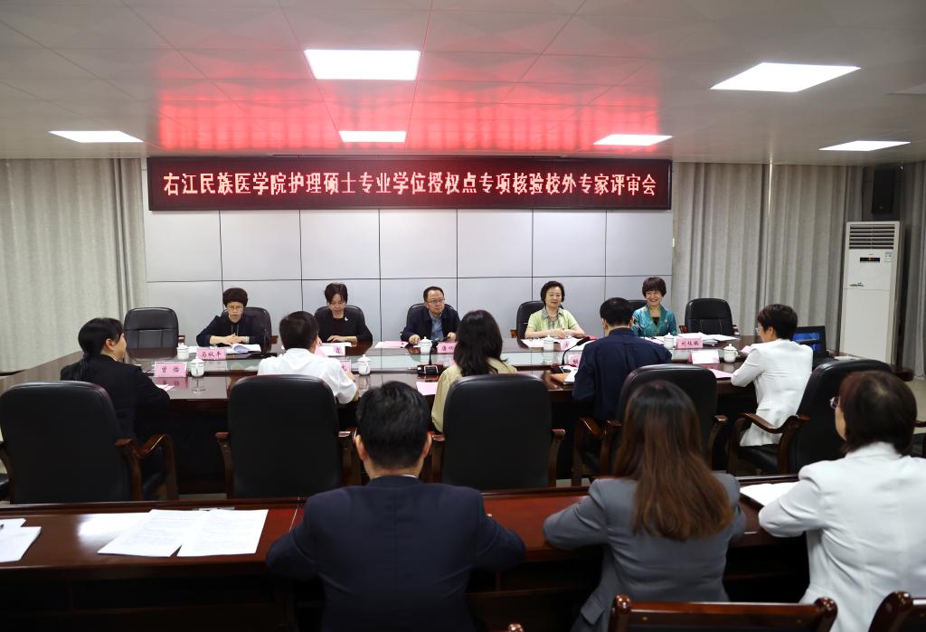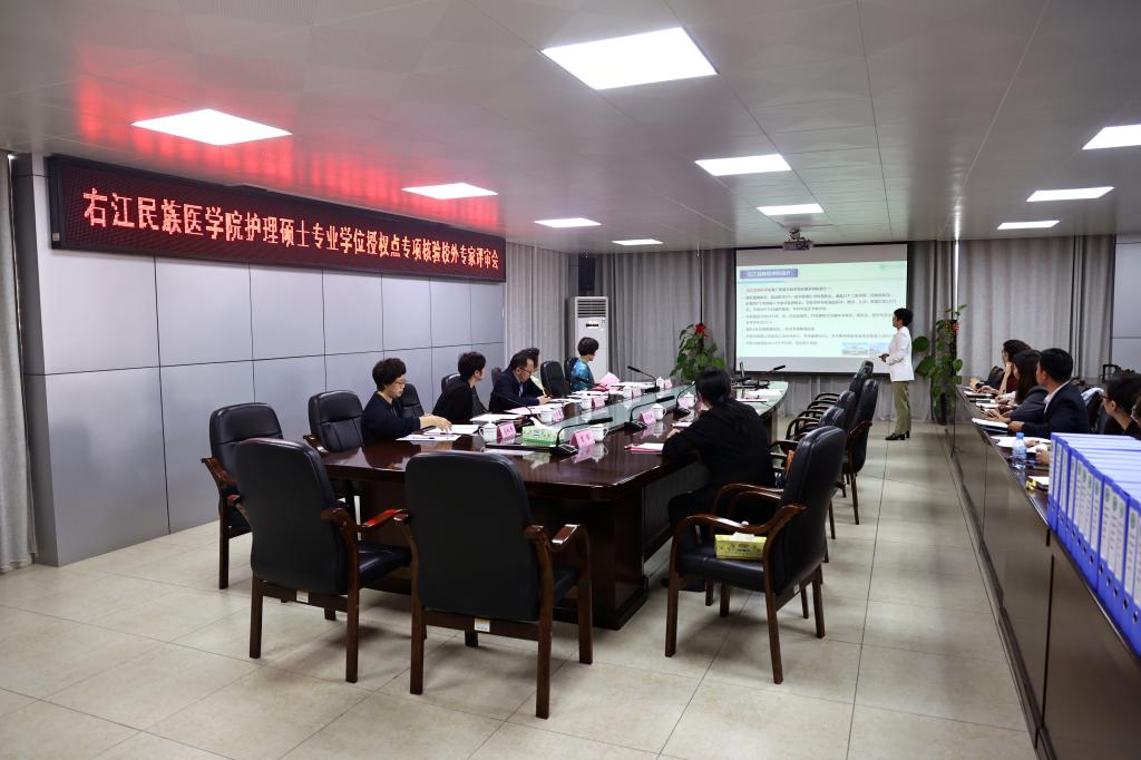 11月2日上午,beat365在7栋13楼第二会议室召开护理硕士专业学位授权点专项核验校外专家评审会。国务院政府特殊津贴专家、中南大学护理学院原院长、博士生导师唐四元任专家组组长,原国务院学位委员会医学专业学位研究生教指委委员、中山大学护理学院原院长、博士生导师尤黎明,中华护理学会精神卫生护理专委会委员、中山大学附属第三医院护理学教研室主任陈妙霞,中国—东盟职业教育与研究中心学术委员会委员、广西医科大学护理学院院长、硕士研究生导师刘桂瑛,广西中医药大学护理学院副院长、硕士研究生导师马秋平作为专家组成员参加评审会。beat365党委书记邓砚,党委副书记、校长李雪斌,党委常委、副校长解继胜出席评审会,研究生学院、护理学院等部门负责人及相关工作人员参加会议。会议由解继胜副校长主持。