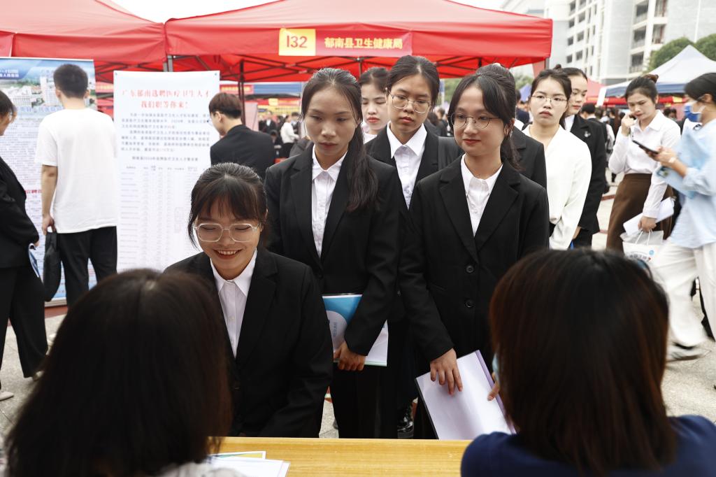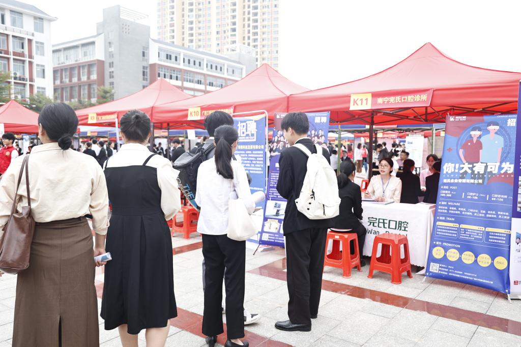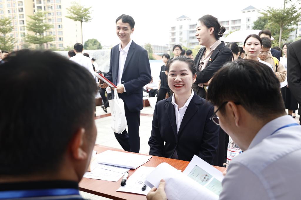 双选会现场氛围热烈,毕业生们结合自身求职目标,积极与用人单位深入交流,勇往“职”前,向心仪的单位投递简历。据了解,本次双选会吸引330家优质用人单位参会,提供了10366个就业岗位。