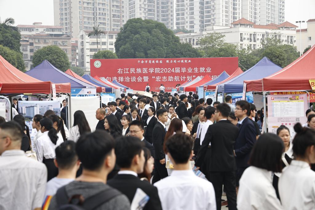云南省文山州砚山县人民医院医务科主任钱猛说:我们医院在云南省129个县市是排名第3的县级二甲医院,右医给我们输送了很多优质人才,我们有很多科主任都是右医毕业的,比如我们消化内科主任、急诊科主任、康复科主任、泌尿外科主任等等,很优秀,非常务实,医疗技术非常精湛,医德很好,所以我们这次带来130个岗位来招右医的人才,其中临床专业招70人。