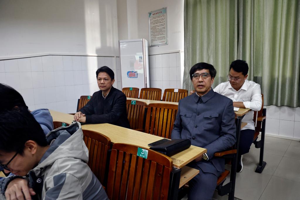 下午3点40分汇报会结束后,检查组组长李卫东和刘国彬教授分别到教学楼开展现场听课。与此同时,冯霞教授和黄金燕教授现场查阅档案资料。