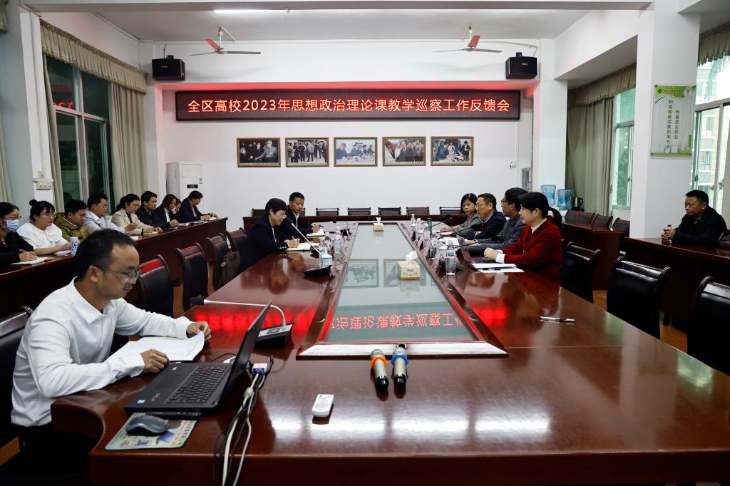 下午5点40分,2023年全区高校思想政治理论课教学巡察工作反馈会在图书馆2楼会议室召开,beat365党委副书记赵丽娟,马克思主义学院及相关部门、学院负责人参加会议。
