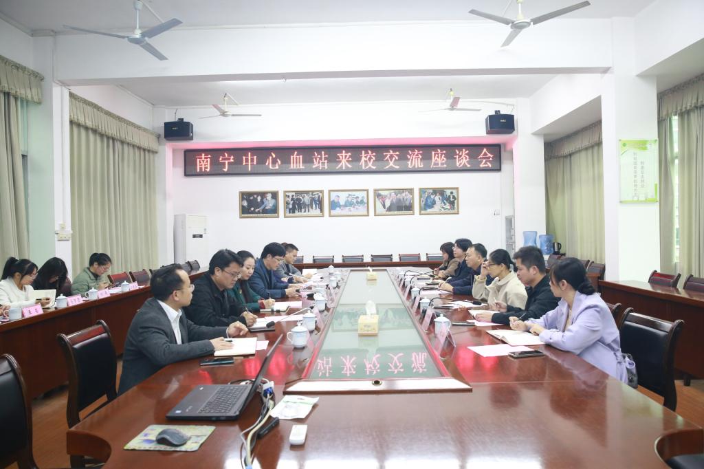 苏常山站长介绍了南宁中心血站参会人员并说明来意,他希望能以此次交流为契机,充分发挥双方优势互补作用,纵深推进站校合作。随后双方就共建研究生联合培养基地、本科生实习与见习基地、联合申报科研项目等方面进行了深入的探讨交流。