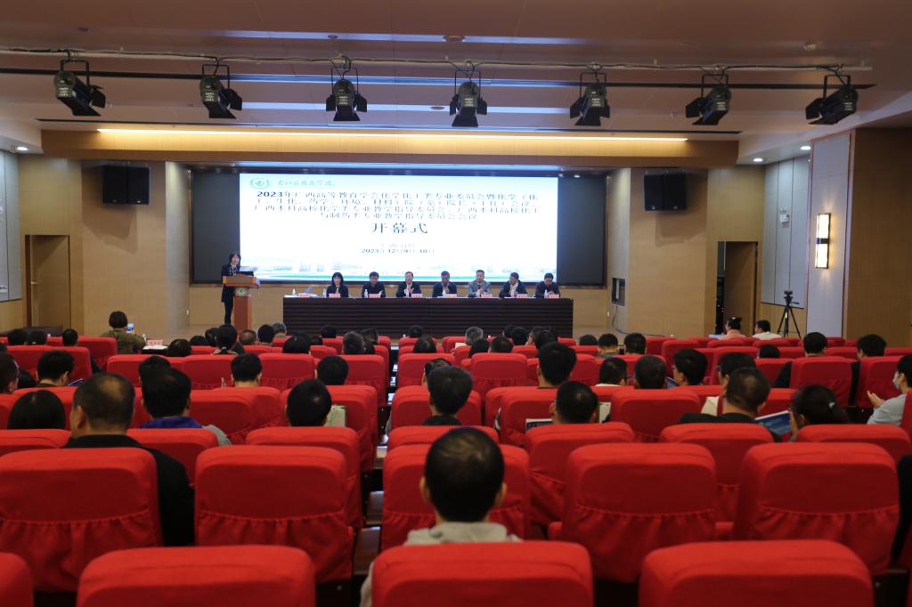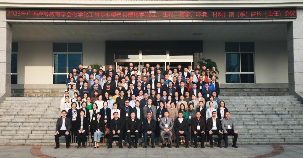 12月9日,2023年广西高等教育学会化学化工类专业委员会暨化学(化工、生化、药学、环境、材料)院(系)院长(主任)会议在beat365成功举办。教育部高等学校化学类专业教学指导委员会秘书长、厦门大学朱亚先,教育部生物学基础实验课程虚拟教研室成员、吉林大学汤海峰正高级工程师,广西高等教育学会化学化工类专业委员会主任委员、广西科协副主席梁宏,广西高等教育学会化学化工类专业委员会常务副主任委员童张法,学校党委常委,副校长谭盛葵教授,来自区内的广西21所高校化学(化工、生化、药学、环境、材料)院(系)负责人、教师代表及支持单位100多名代表参会。