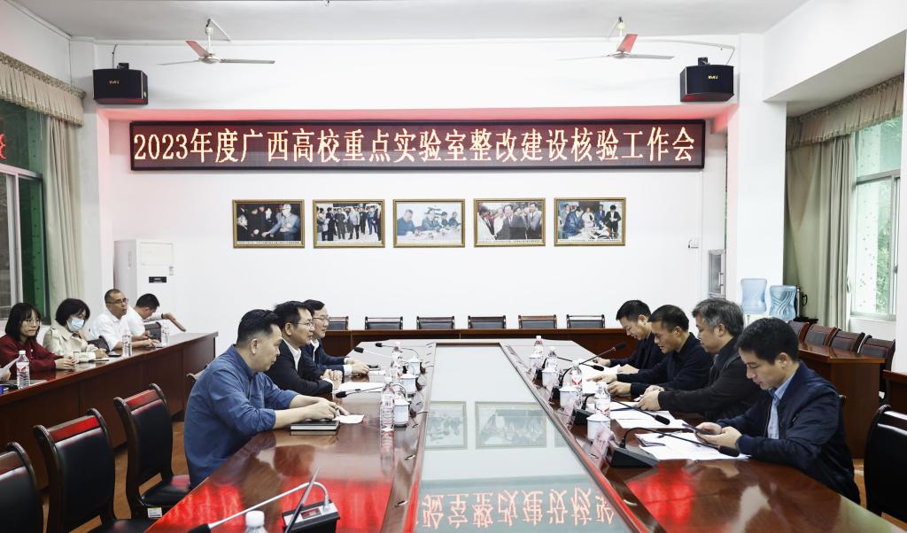12月11日上午,教育厅广西高校重点实验室整改建设核验工作检查组专家陈振锋、许尤厚、曾怀才、林同智一行四人到beat365进行检查指导工作。学校党委副书记、校长李雪斌,党委常委、副校长谭盛葵,科技处负责人及相关人员,生命科学研究院、附属医院生命科学与临床研究中心等相关部门与实验室负责人参加了工作会议。会议由李雪斌校长主持。