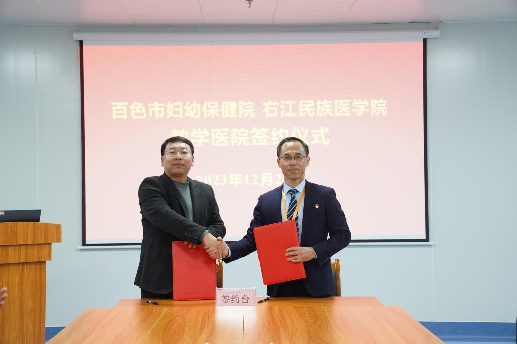 王俊利副校长在讲话中指出,两家医院作为学校同城(百色)教学资源的重要组成部分,同饮右江水,共为医学卫生健康教育事业做贡献,希望双方以此为契机,抢抓机遇,主动作为,在教育教学、学科建设、人才培养、科学研究等方面展开更深层次的合作,促进医教研协同高质量发展。