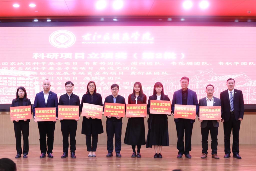 科研项目立项奖:国家地区科学基金项目韦贵将团队、浦涧团队、韦花媚团队、韦积华团队,国家自然科学基金专项项目屈迟文团队,2023年创新驱动发展专项资金新项目黄衍强团队,广西重点研发计划项目庞雅琴团队,广西自然科学基金重点项目吴标良团队,广西自由探索类基础研究类项目陈文成团队。