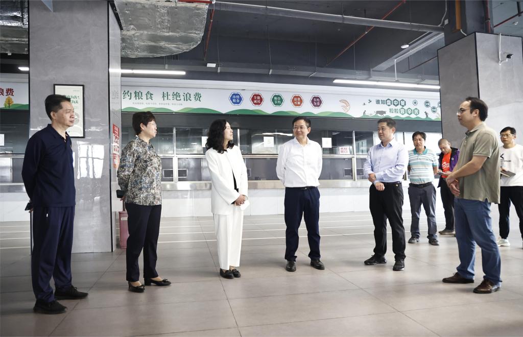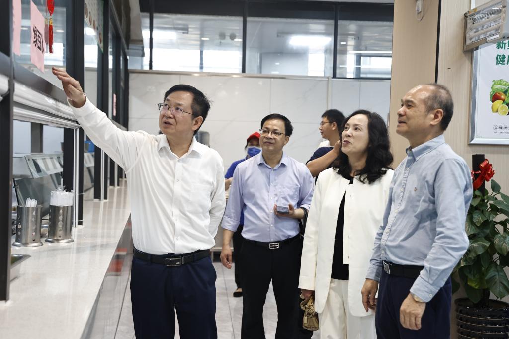检查组一行在学校百东校区食堂进行安全检查。