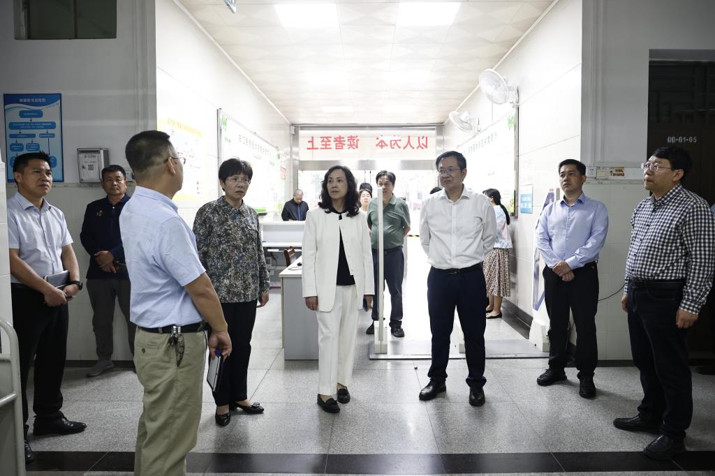 检查组一行在附属医院百东院区进行安全检查。