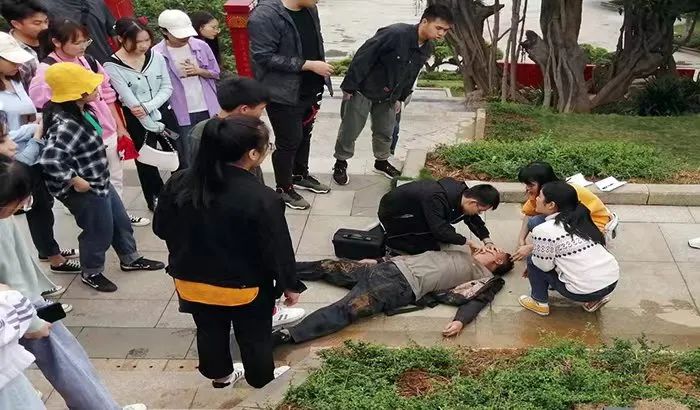 两人立即对阿叔进行心肺复苏