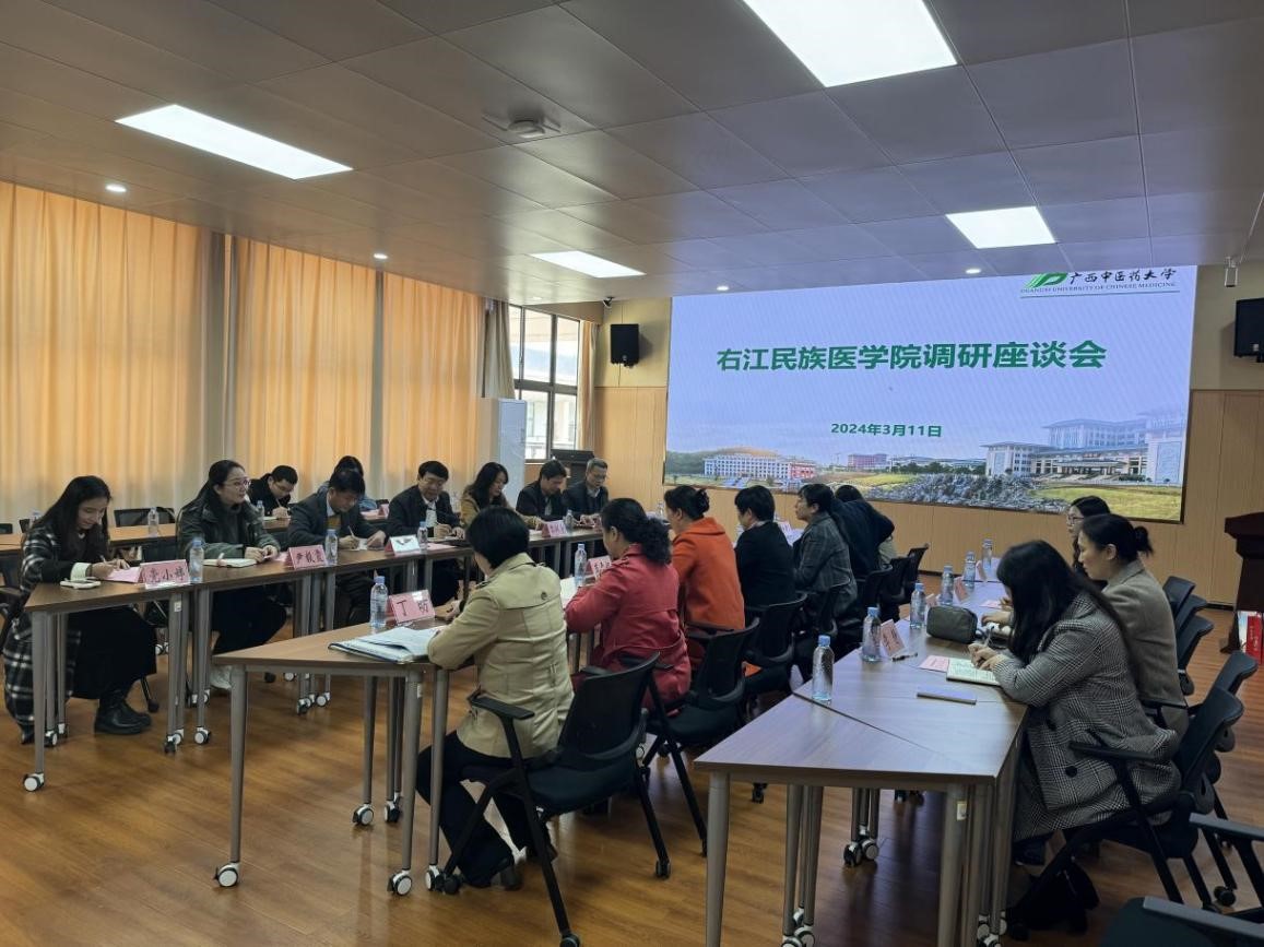 3月11日上午,在广西中医药大学交流期间,广西中医药大学副校长钟宏桃热情接待beat365一行,组织参观了教学实验实训中心并召开了座谈会,广西中医药大学校长办公室、教务处、教育评价与质量保障中心等部门负责人及工作人员参加会议。