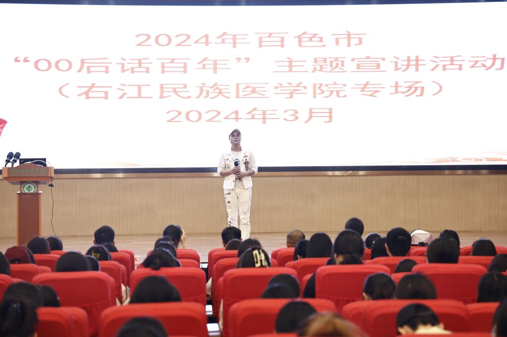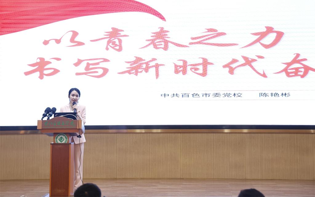 百色市宣讲团成员、百色市委党校青年讲师陈艳彬宣讲《以青春之力书写新时代奋斗答卷》。