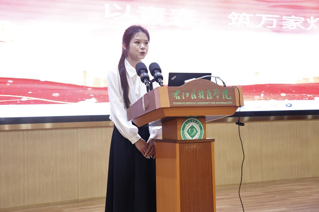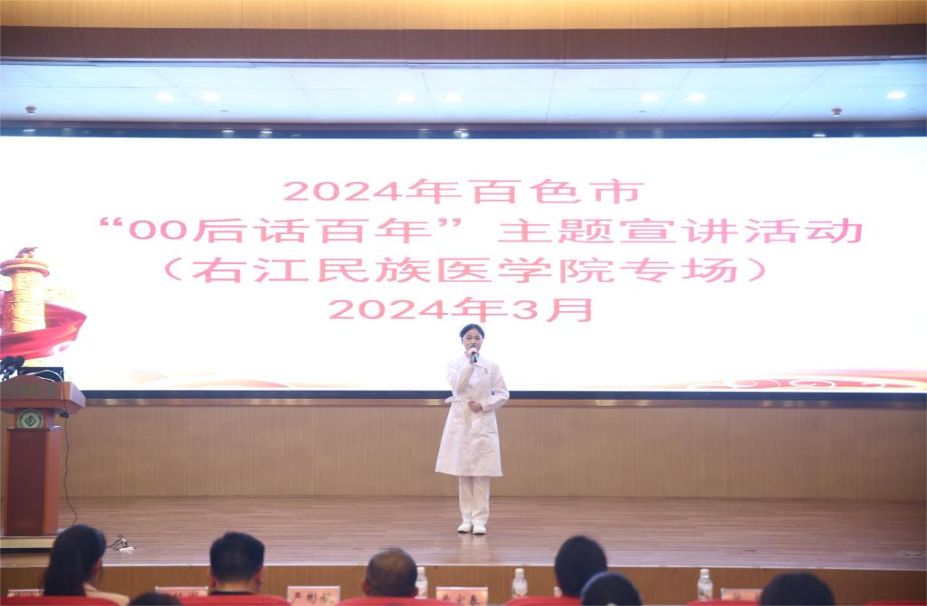 广西壮族自治区“00 后话百年”讲师团成员、百色市宣讲团成员、beat3652022级护理学本科1班学生张怡宣讲《用生命诠释最美青春》。