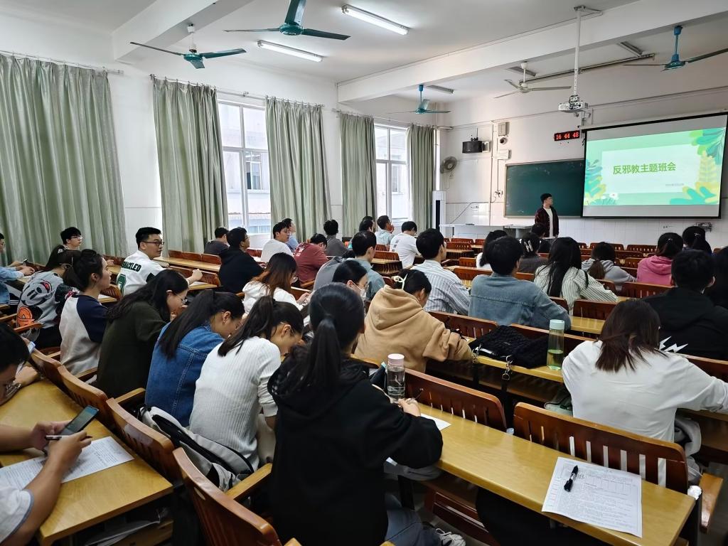 结合“国家安全 青春挺膺”主题团日活动周,各学院以班级、党团支部等为单位,通过班会、党团支部会议形式,认真组织开展“反邪教警示教育进校园”“反分裂反渗透进校园”主题班会、主题党团课学习,观看国家安全宣传片和警示教育宣传片,着重开展“反邪教”常识学习教育,引导学生关注“国家安全部”“中国反邪教”微信公众号,提高学生防范邪教意识和能力。