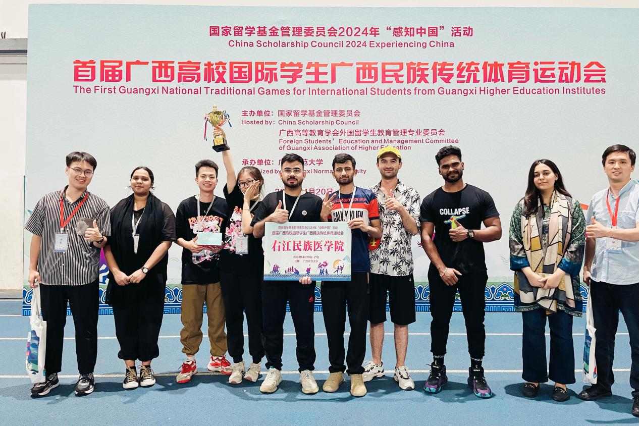 4月19日至21日,由广西留管学会联合主办、广西师范大学承办的首届广西高校国际学生广西民族传统体育运动会暨中国文化体验活动在桂林开展,来自全区30所高校280余名中外师生参加了此次活动。beat365选拔8名优秀国际学生代表参加此次活动。