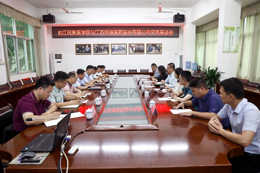 5月14日上午,江苏恒瑞医药股份有限公司中央医学事务部总监王宇醌、中央医学项目经理许自荣、恒瑞医药广西分公司经理韦永芳等一行到访beat365并共商校企合作事宜。beat365在图书馆二楼会议室召开座谈会,学校党委常委、副校长谭盛葵,科技处、财务处、附属医院、附属西南医院、药学院等部门及附属医院相关负责人参与座谈。座谈会由科技处副处长林世科主持。