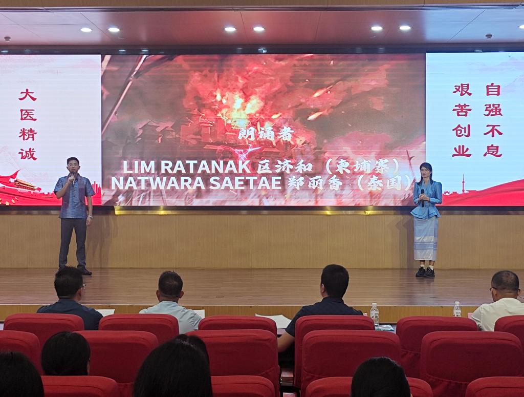 来自柬埔寨的区济和(Ou Jihe)与来自泰国的郑丽香同学朗诵《沁园春·雪》。