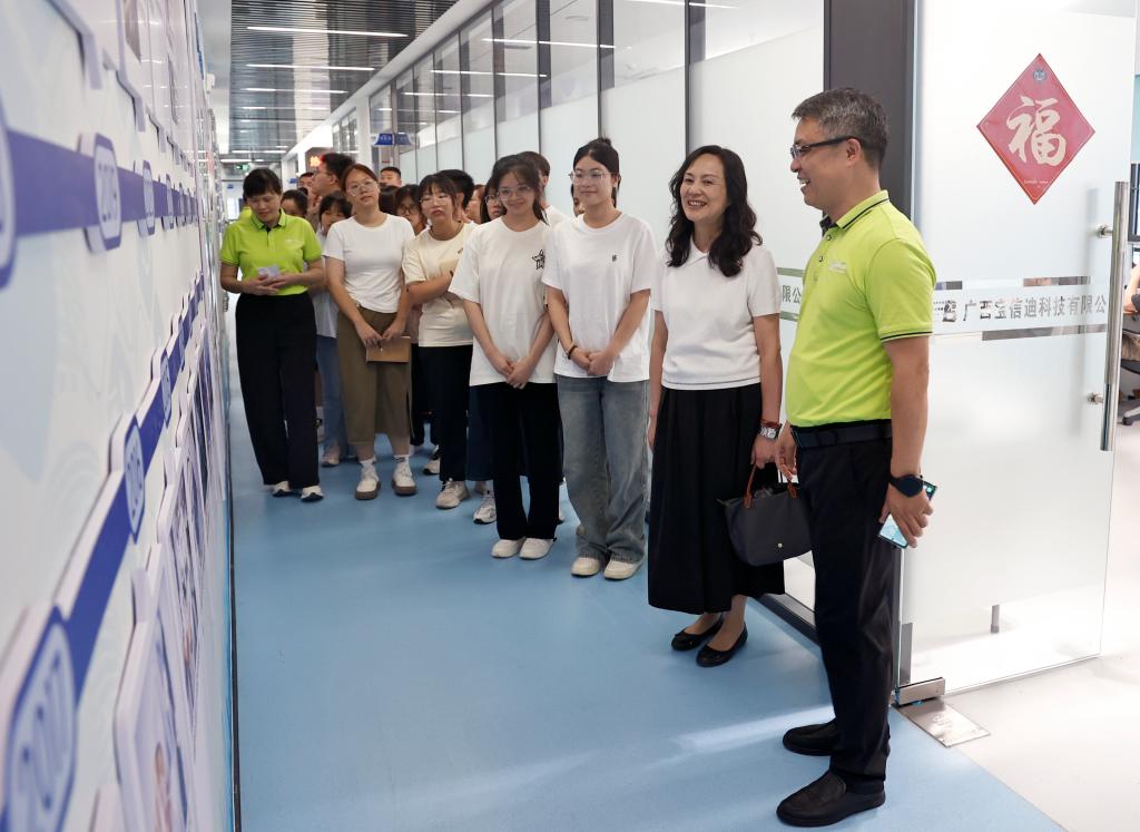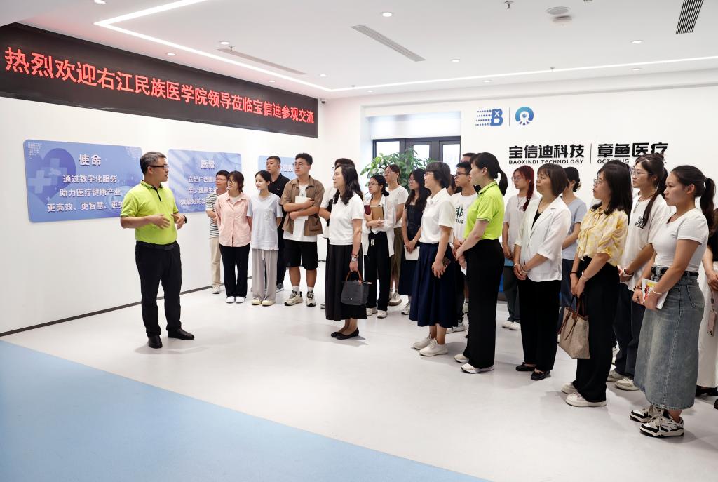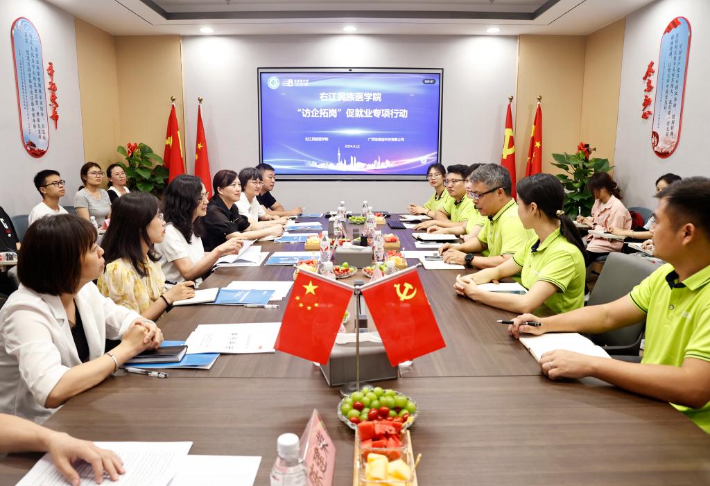 6月12日,学校党委书记邓砚带领公共卫生与管理学院学生代表走进广西宝信迪科技有限公司开展访企拓岗活动。