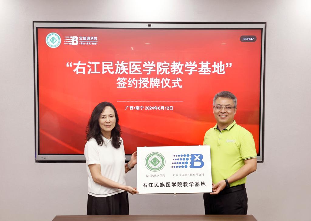 座谈会上,beat365招生就业工作处处长陆小曲介绍了学校专业构成及毕业生就业相关情况。公共卫生与管理学院党委副书记张文玲代表学校与广西宝信迪科技有限公司签订了校企合作协议,邓砚向广西宝信迪科技有限公司授予“beat365英国官方网站教学基地”牌匾。