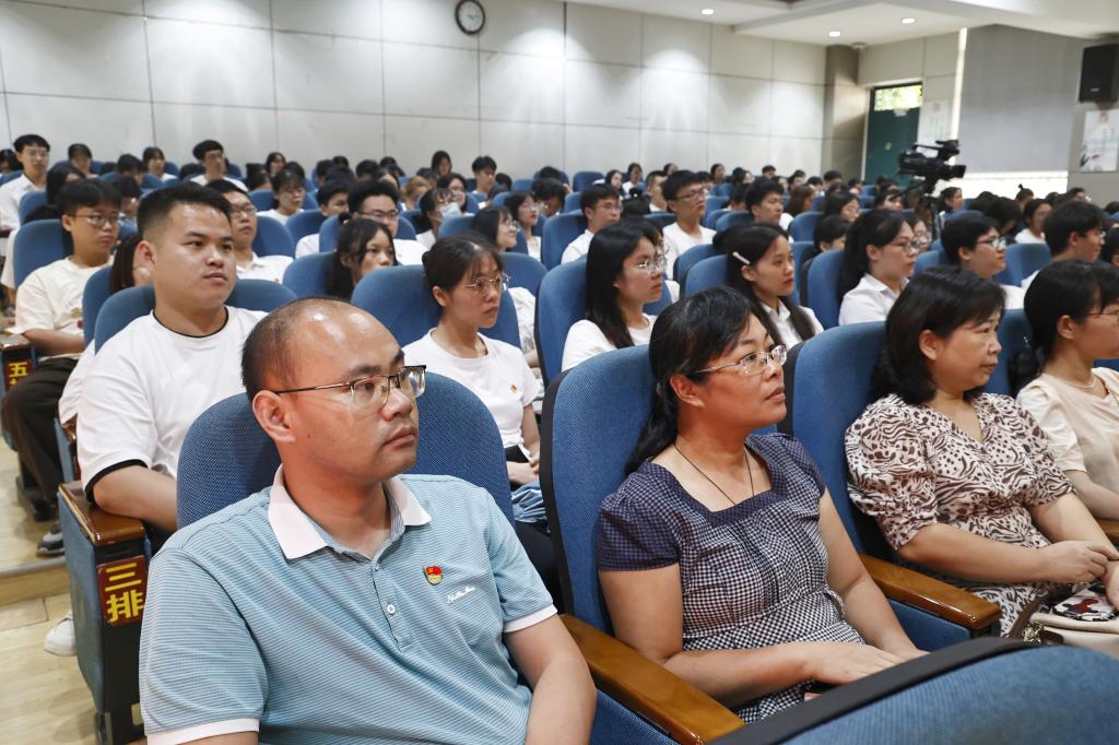 为深入学习宣传贯彻习近平新时代中国特色社会主义思想和党的二十大精神,推动党纪学习教育走深走实,引导毕业生党员坚定理想信念,牢记党员身份,勇于担当作为,6月17日下午,学校党委书记邓砚为2024届毕业生党员讲授专题党课。学校党委副书记赵丽娟主持党课,学生工作部(处)全体人员、二级学院辅导员代表以及2024届毕业生党员代表到场聆听。