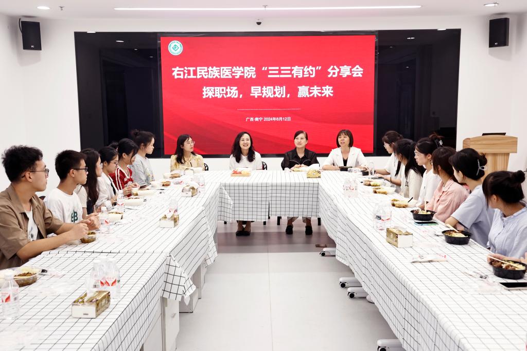 6月12日,学校党委书记邓砚带领公共卫生与管理学院2022级、2023级学生代表走进广西宝信迪科技有限公司开展访企拓岗活动。在活动结束后,邓砚与同学们开展第41期“三三有约”活动。大家共进晚餐,面对面谈心交流。