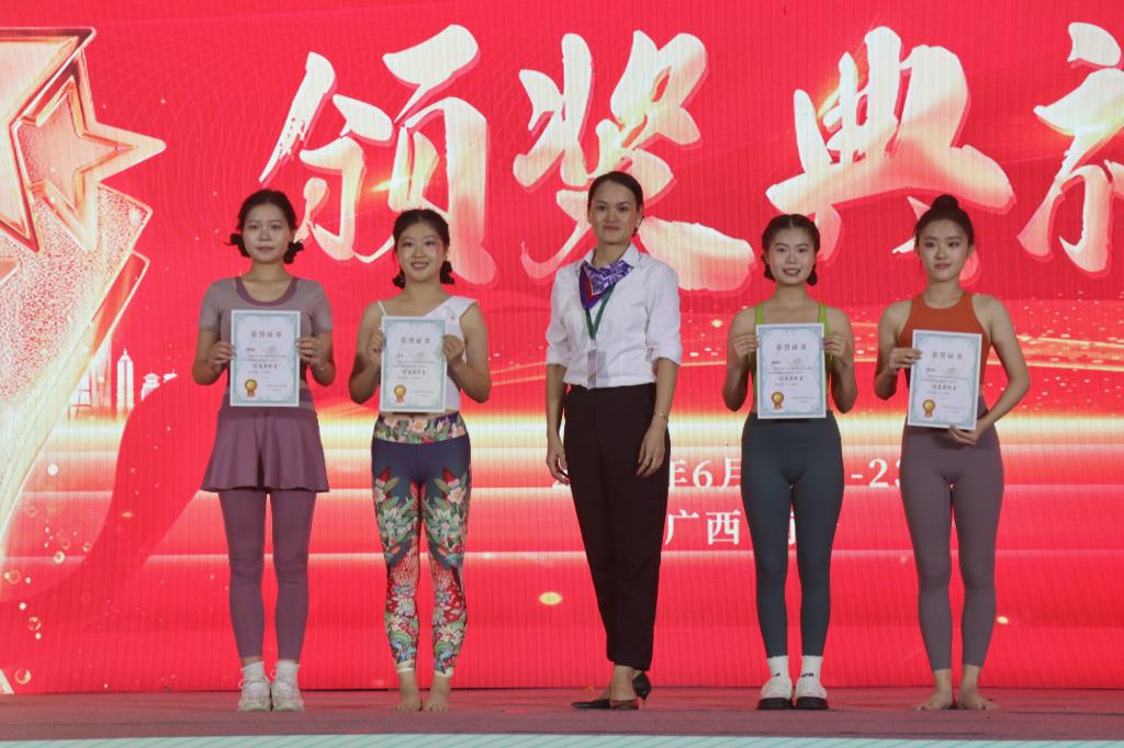6月21日至23日,第三届广西壮族自治区大学生健身瑜伽锦标赛在广西中医药大学举行。beat365瑜伽队在此次比赛中斩获高校本科组女子单人一等奖、二等奖;女子双人一等奖;团体中级组、高级组二等奖等荣誉。