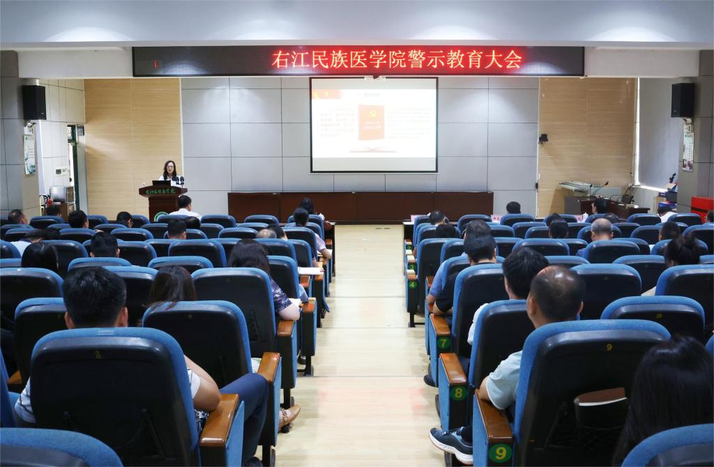 6月28日上午,学校召开党纪学习教育专题辅导会暨警示教育会,深入学习贯彻习近平总书记关于全面加强党的纪律建设的重要论述和习近平总书记关于广西工作论述的重要要求,认真落实党中央关于党纪学习教育的部署要求,学习贯彻新修订的《中国共产党纪律处分条例》和自治区警示教育大会精神,结合广西严重违纪违法典型案例深入开展剖析,深化以案说德、以案说纪、以案说法、以案说责,教育引导广大党员干部对照剖析、反躬自省、汲取教训,带头明大德、守公德、严私德,进一步增强政治定力、纪律定力、道德定力、抵腐定力,始终做到忠诚干净担当。校领导邓砚、周艳娥、黄龙坚、冼季夏、解继胜、谭盛葵、王俊利出席会议,会议由学校党委书记邓砚主持。