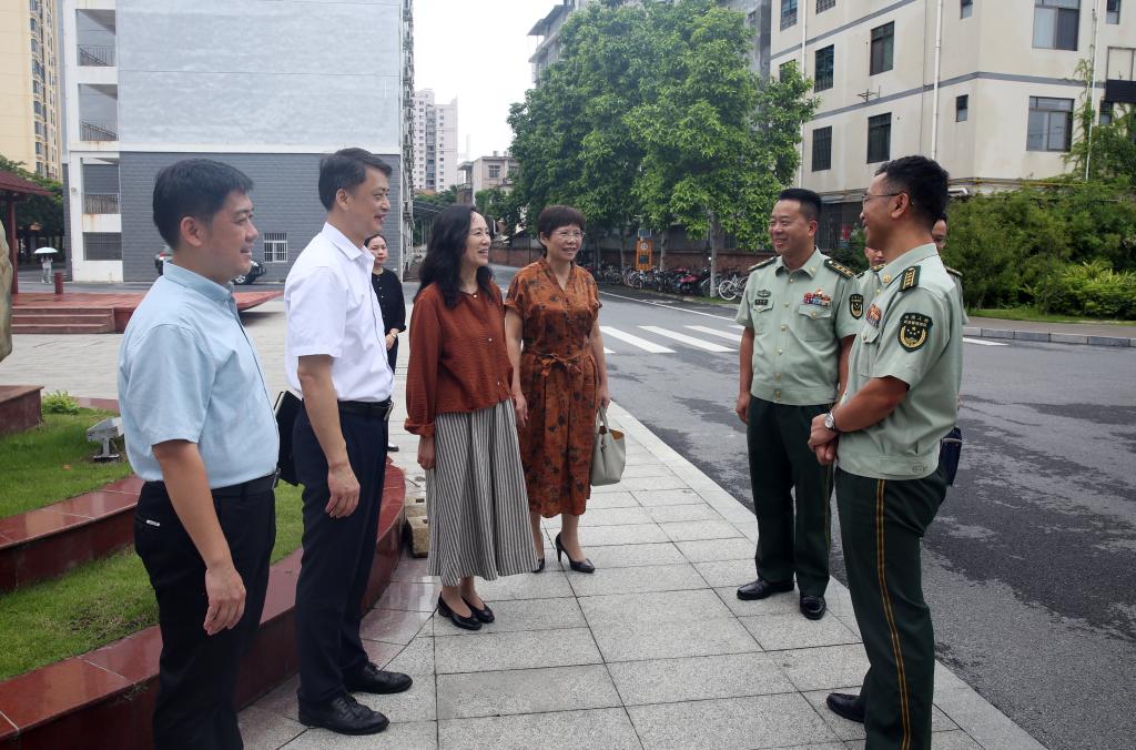 党委书记邓砚、副书记赵丽娟、副校长黄龙坚、纪委书记冼季夏到校门口迎接赵明辉大校主任一行。