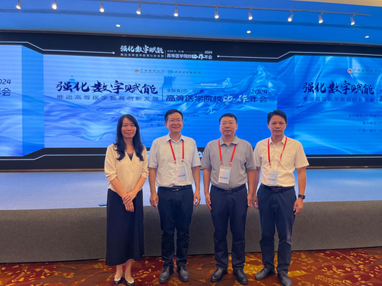 7月6日,广西医科大学与人民卫生出版社共同主办的2024年度全国省(市、区)属高等医学院校协作年会在南宁成功召开。会议以“强化数字赋能,推进高等医学教育创新发展”为主题。自治区教育厅二级巡视员赵成光,人民卫生出版社董事长兼党委书记王雪凝以及来自全国27个省(市、区)52所高等医学院校的校领导、专家和教学管理干部等260余人参加。beat365李雪斌校长、王俊利副校长带领教务处、教评中心相关负责人参加会议。