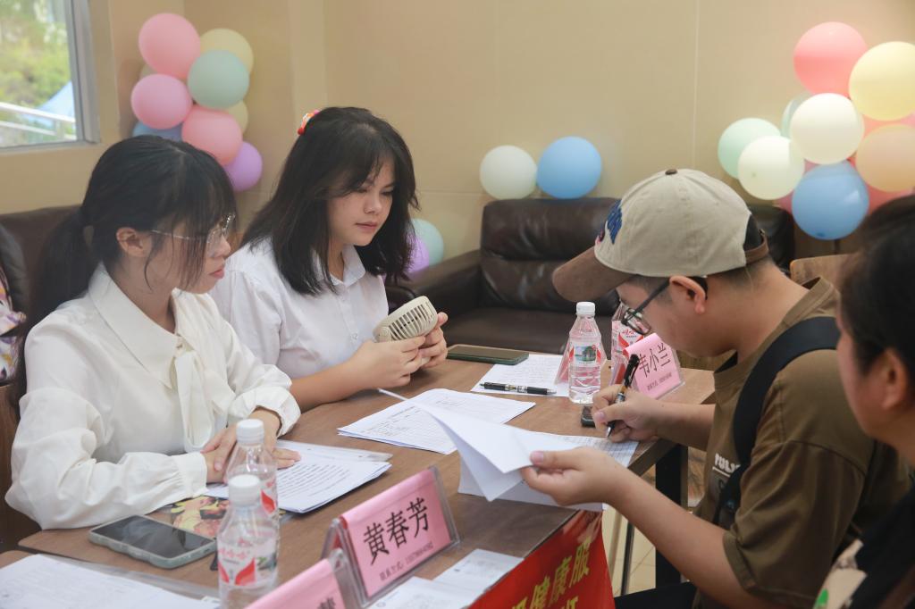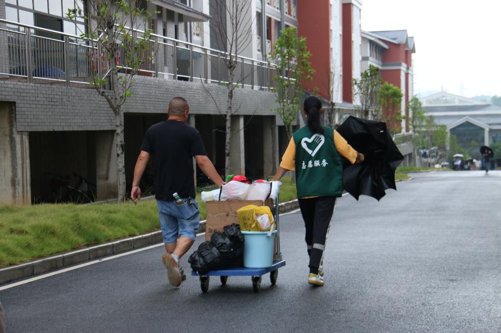 “你好同学,我来帮你拿行李!”“欢迎来到右医,我来给你撑伞,别淋着了。”“学弟学弟,请跟我往这边走,我带你去报到。”身穿统一“绿马甲”的志愿者们打破了新生初次见面的尴尬,他们有的为新生与家长撑伞护送,有的协助搬运行李,有的引导新生报到,一道道忙碌的身影成为校园中一道亮丽的风景线,让新生们的初到校园之旅既温馨又暖心。