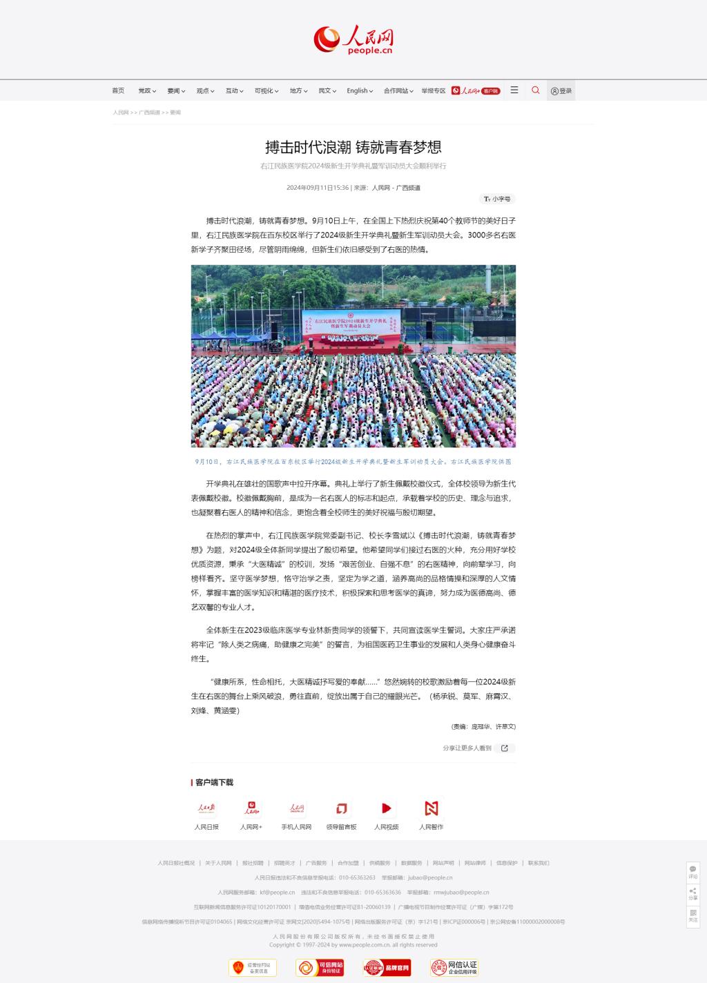 【媒体看右医】人民网:搏击时代浪潮 铸就青春梦想