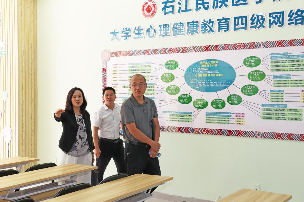 9月25日,自治区党委教育工委统战部部长沈鸿银到beat365调研指导,校党委书记邓砚陪同调研。