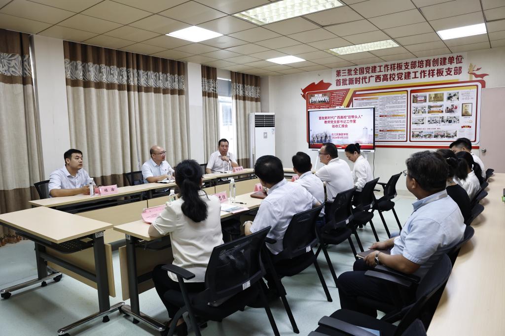 9月23日上午,首批新时代广西高校“双带头人”教师党支部书记工作室创建验收第三组组长南宁师范大学自然资源与测绘学院党委书记黎先带队,一行3人到beat365对临床医学院(附属医院)肾内科党支部书记工作室进行实地验收。beat365党委书记邓砚陪同验收,党委组织部、临床医学院(附属医院)、培育创建单位负责人等参加汇报会。