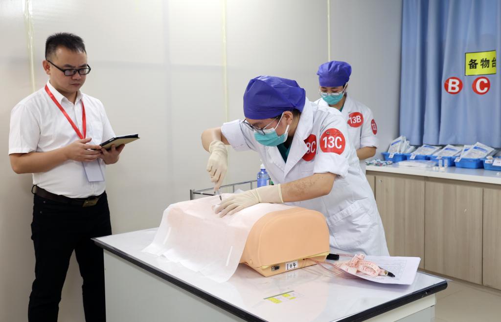 本次大赛共分为两个阶段,初赛设2条赛道,每条赛道8个考站;决赛设3条赛道,每条赛道3个考站,内容涵盖内、外、妇、儿、急救、护理等基本操作技能及相关知识,全面考核学生的临床思维能力、临床技能、团队合作及危机管理等能力。此次大赛组织井然有序,竞赛安排紧凑合理,考官评判科学公正,参赛选手精神饱满,严格遵守赛场规则。经过激烈角逐,最终产生4个团体一等奖、4个团体二等奖、7个团体三等奖、17个团体优秀奖、4个优秀组织奖、12位优秀个人奖。